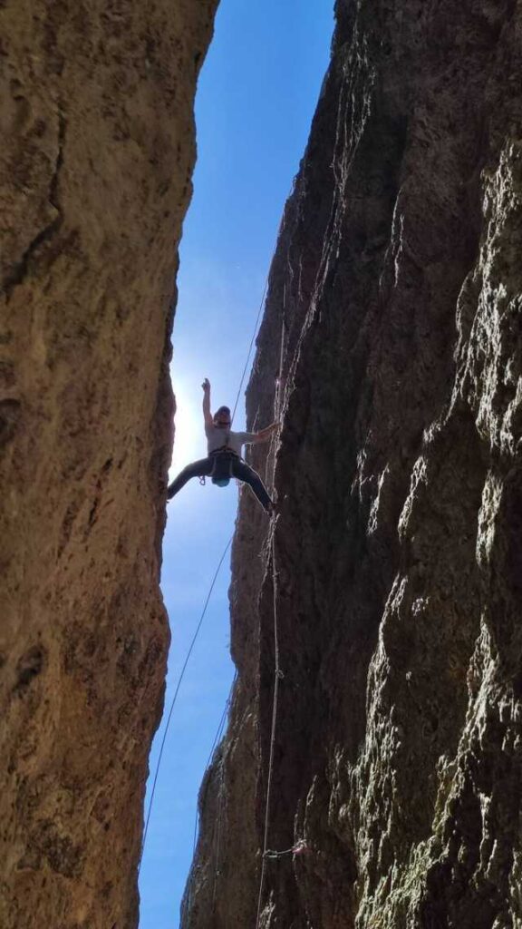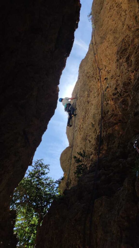 Incluso tuvimos invitados inesperados. Tras las risas y los encadenes, descubrimos que, si tú no te pegas a la roca, la naturaleza se pega a ti: ¡nos llevamos algunas garrapatas de recuerdo! Un pequeño gaje del oficio que sirvió para echarnos las últimas carcajadas del día mientras nos revisábamos antes de las cervezas de rigor.